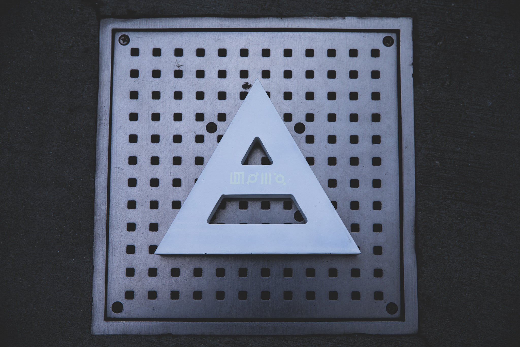 - White wooden triad with tonal glyphs